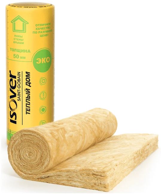Рулонная стекловата Isover Теплый Дом поставляется в отрезках размером 5490×1220х50 мм и предназначена для выполнения работ внутри дома. Благодаря гибкости и большой протяженности отрезков такая разновидность утеплителя оптимально подходит для теплоизоляции пола и перекрытий, однако может применяться также и для утепления стен. Профессиональные монтажники отмечают удобство и простоту укладки такого материала. Кроме того, он приятен на ощупь и не колется (хотя при порезке все же рекомендуется применять респиратор и перчатки, так как мельчайшие частицы волокон могут вызвать раздражение кожи и слизистых оболочек).